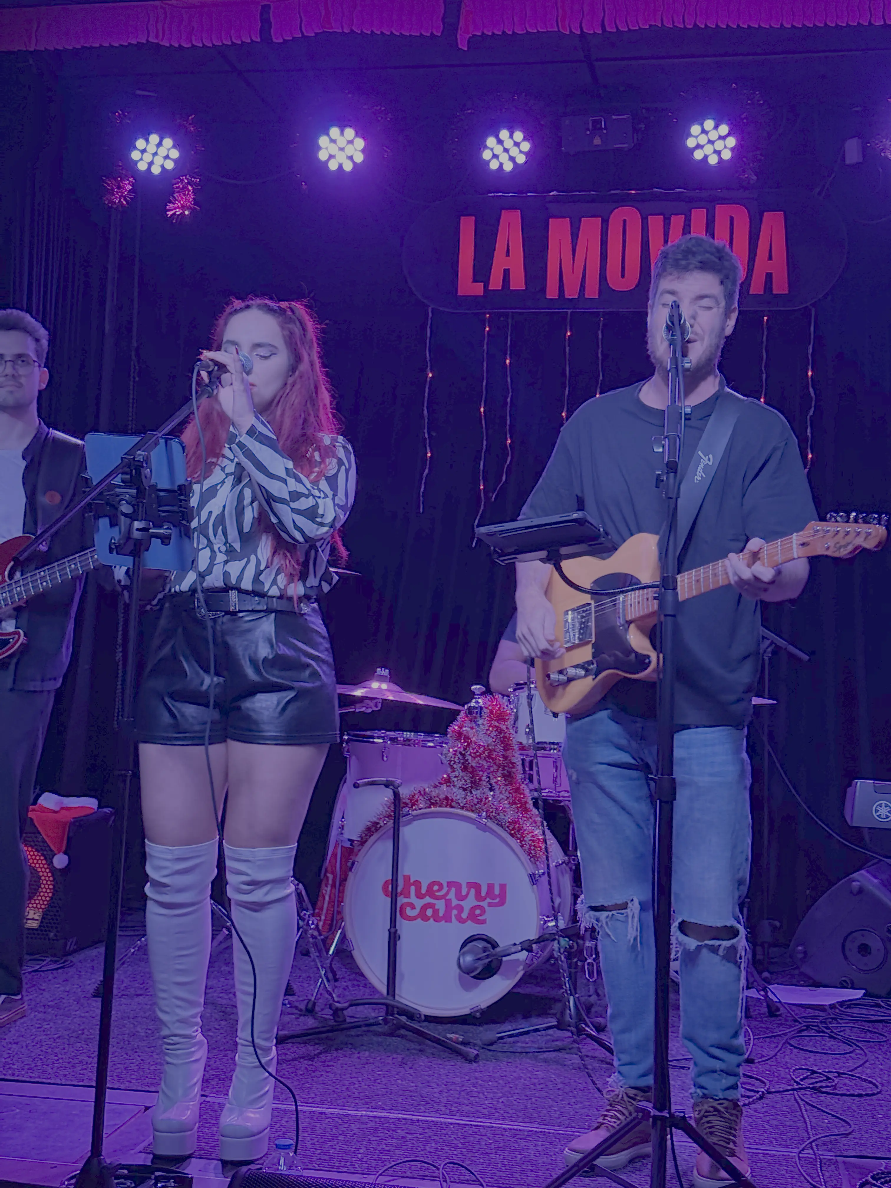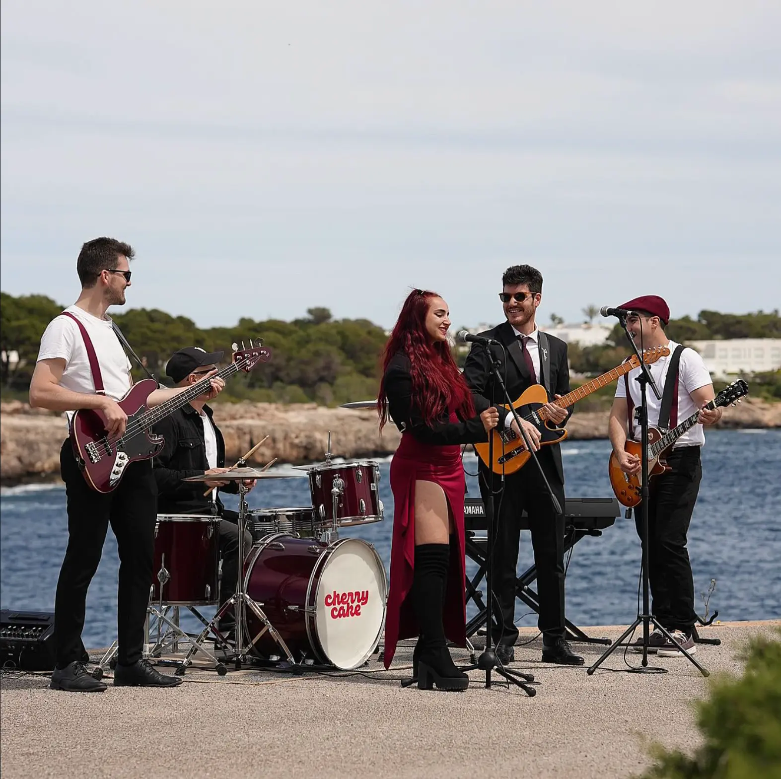 We are Cherry Cake, a Mallorca-based cover band formed by five musicians who share a passion for live music. Our repertoire blends pop, funk, soul and disco classics that people recognise from the very first chord.